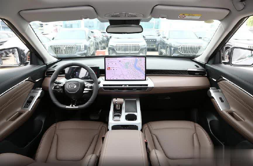 拉开车门,进入传祺GS4 MAX的座舱,层次分明的中控台有软皮、金属饰条、钢琴烤漆面板等多种元素组合而成,用料复杂但看着并不凌乱。配色方面有栗色胡桃和清晨奶咖,低饱和度的座舱风格,营造出温馨、舒适的乘坐氛围。主驾驶位前方的平底式方向盘为皮质包覆,轮圈较粗,利于日常抓握,在四向调校的加持下,兼顾到不同身材的消费者。