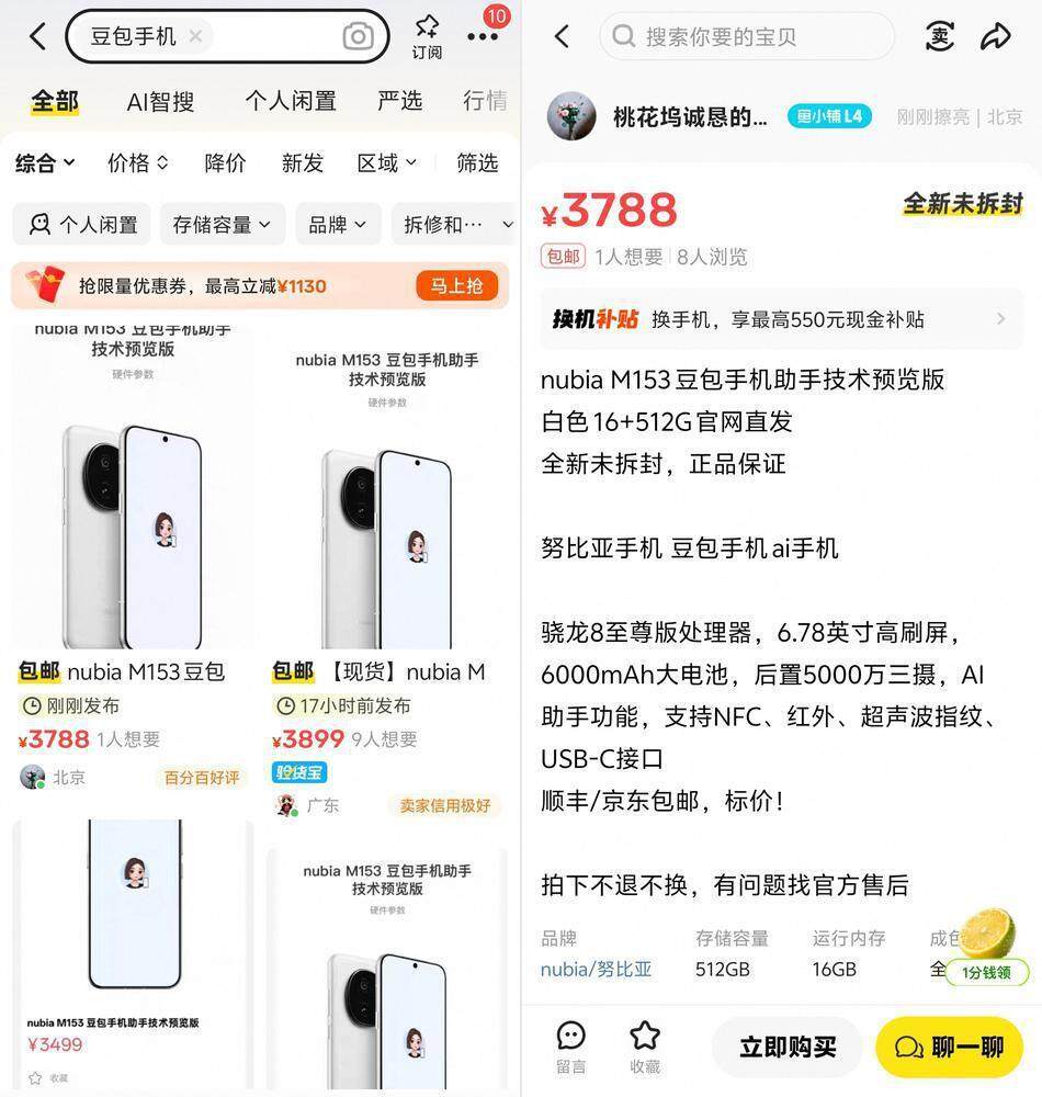 12月1日,字节跳动豆包大模型与中兴努比亚联合发布的AI工程机“努比亚M153 ”瞬间点燃市场。首批约3万台备货迅速售罄,二手平台价格飙升,最高叫价近1.3万元。其核心卖点在于“解放双手”:用户通过语音指令,即可让AI助手在屏幕上自动操作,跨越应用边界完成任务。